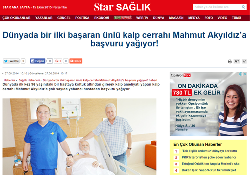 Star Health/ Applications are pouring in for Mahmut Akyıldız, the renowned heart surgeon who has achieved a world first! (27.06.2014)